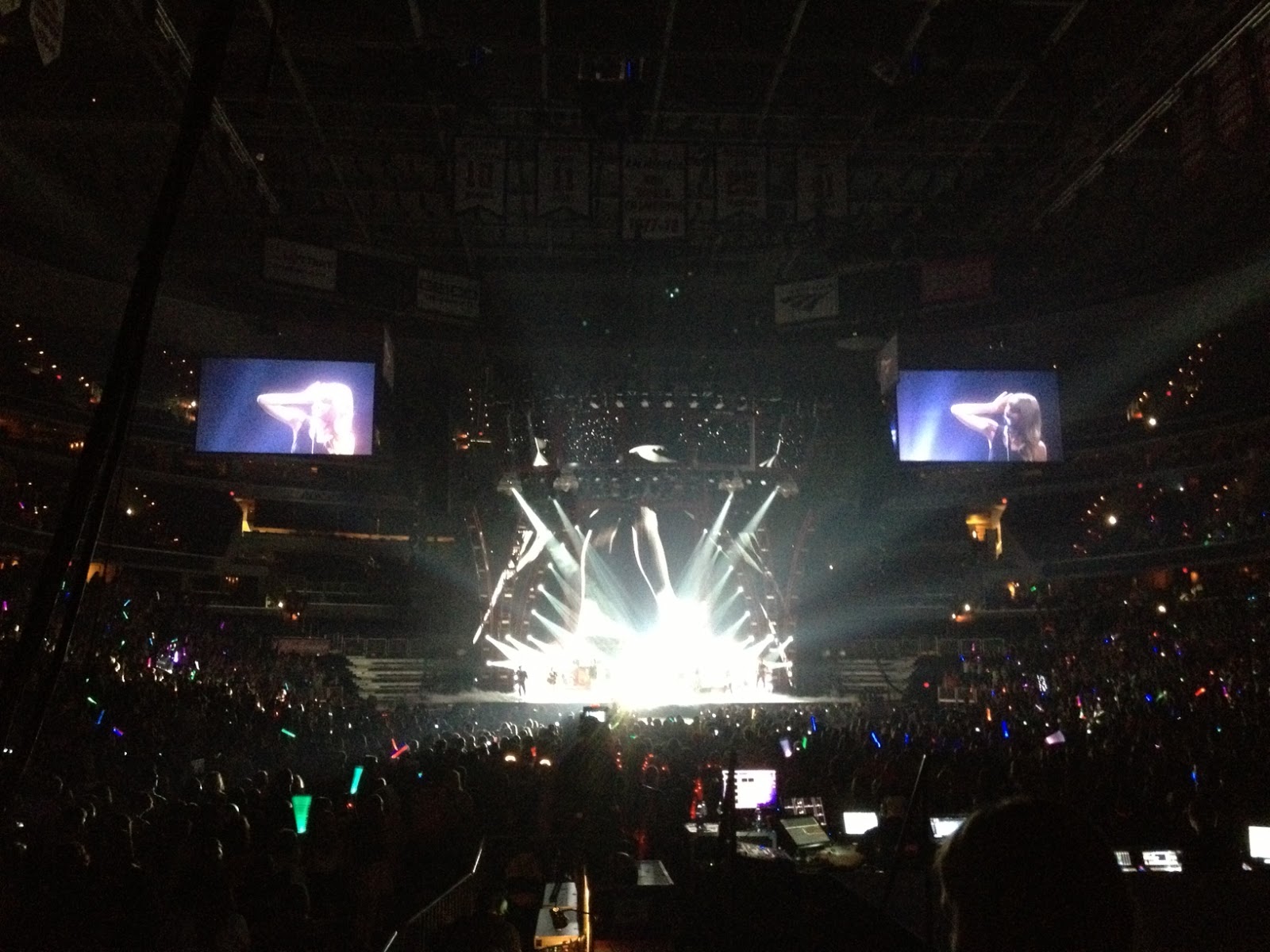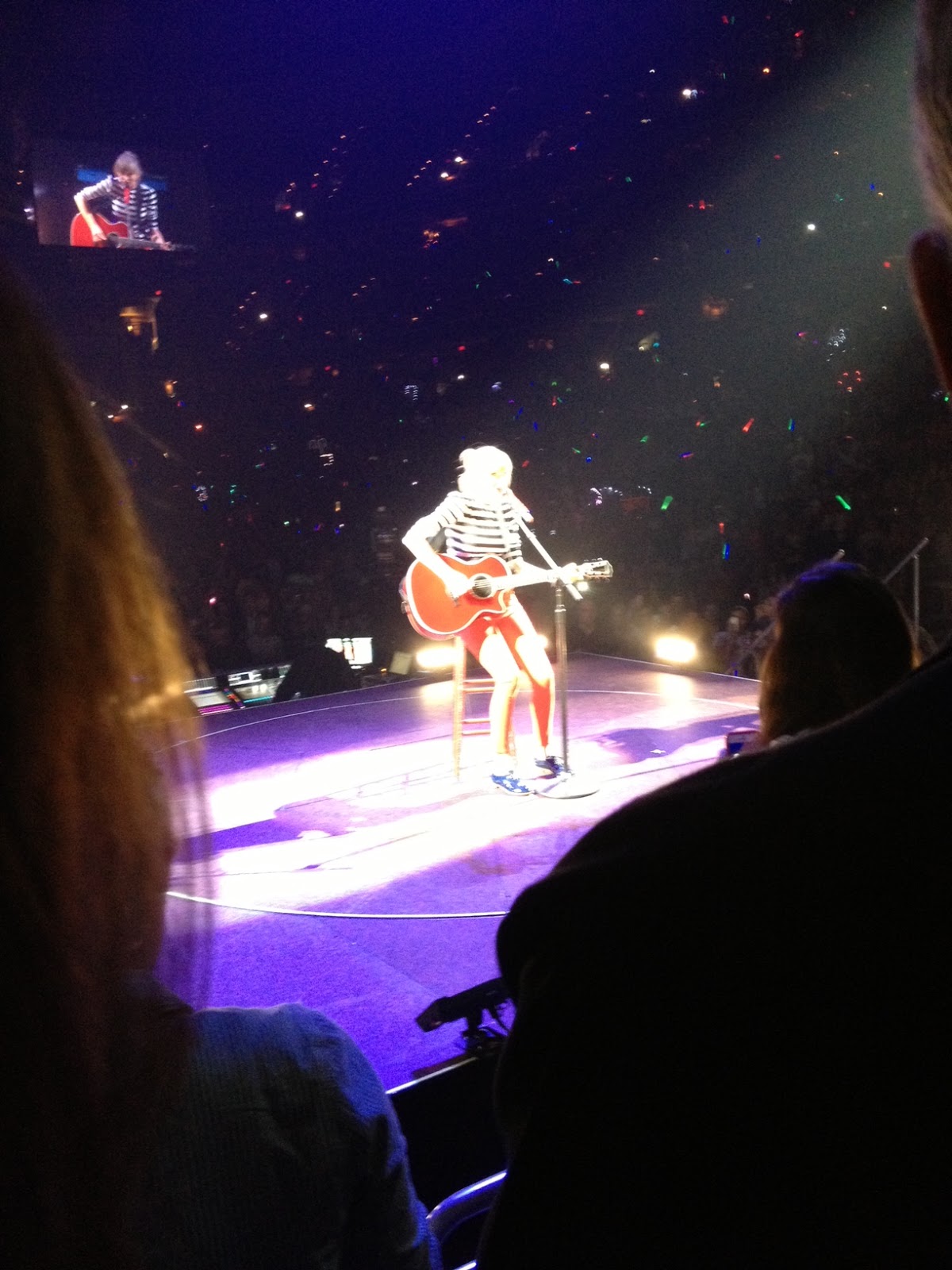 | If you've seen T Swizzie in concert, you know that she always appears on another stage towards the back of the stadium to sing a few songs. Little did I know, that stage would be right in front of my section and I would be three rows away from her....yes, I cried again. |